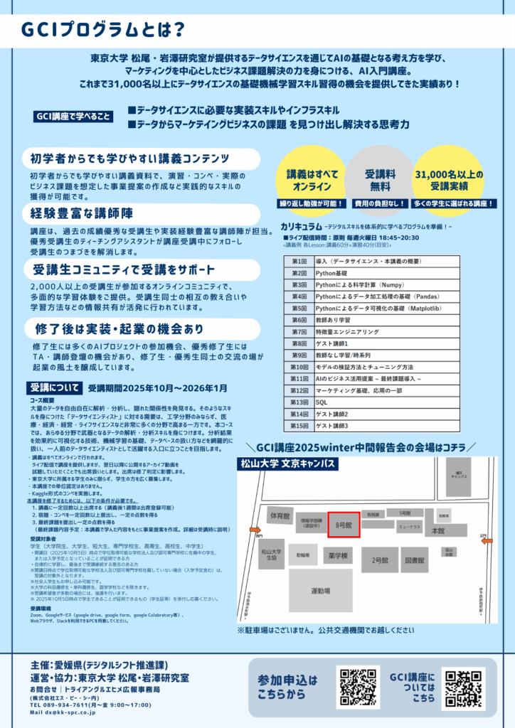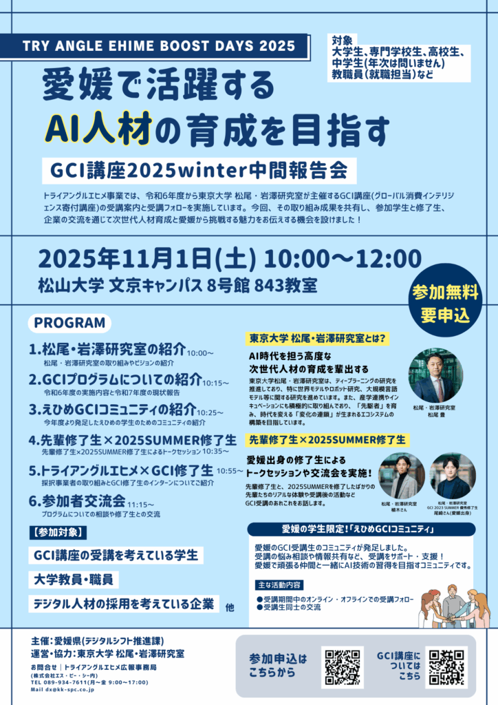 トライアングルエヒメ事業では、令和6年度から東京大学 松尾・岩澤研究室が主催する