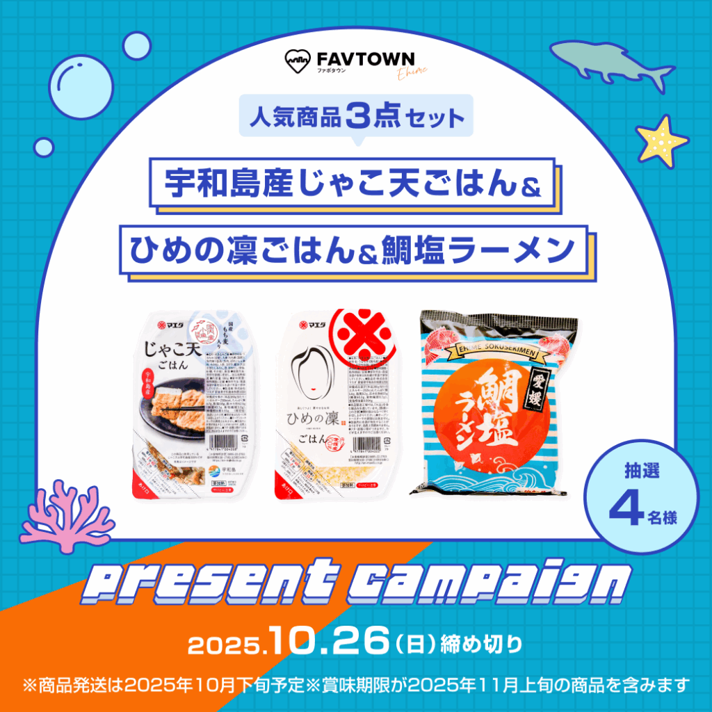 ○キャンペーン詳細はこちらから:https://favtown.jp/ehime/news/ehime-prefecture/n0d7de1aca929/